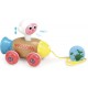 Fusée et astronaute à traîner en bois. Illustré par Ingela P. Arrhenius par Vilac. En appuyant sur la tête du cosmonaute la fusée fait Pouet-Pouet. Avec clip de sécurité sur la cordelette.