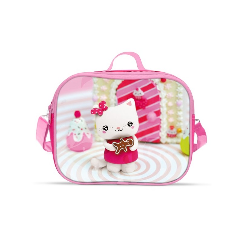 Sac lunch bag isotherme "Ginger", en PVC glossy imprimé, intérieur nylon. Dimensions: 18 x 23 x 8 cm. bandoulière réglable.